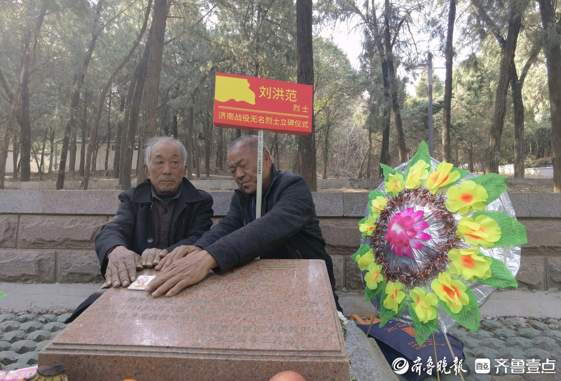 “77年了,一点信儿都没有,找都没处找。”刘仁江说,自己的奶奶经常念叨二叔刘洪范,叫着他小名,念叨他到底去了哪里。原来,刘洪范烈士是偷偷出来参军的,从出来之后就彻底没有了音信,直到这次济南革命烈士寻亲中心的工作人员找上门,他才知道二叔原来葬在了历城革命烈士陵园。