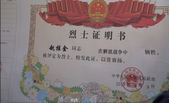 赵桂金烈士是爆破手,在济南战役中壮烈牺牲。 “如今,他的英魂终于得以安息。”赵桂金烈士的侄子赵熙泽、赵熙忠通过视频连线的方式,让91岁的烈士弟弟与长眠地下的兄长“相见”。