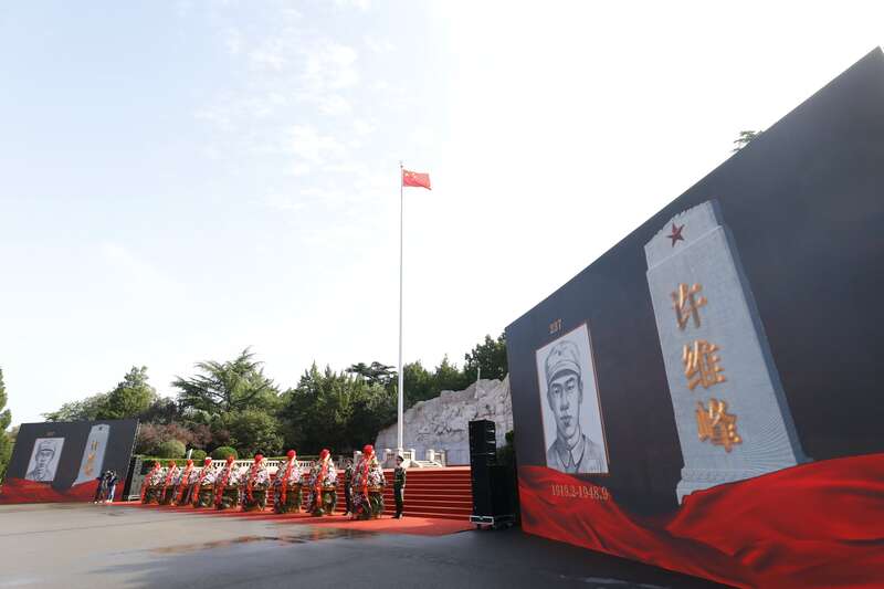 9时,仪式开始,济南革命烈士陵园英雄广场庄严肃穆,全体人员齐声高唱国歌,激昂的旋律在苍松翠柏间回荡。国歌唱毕,全场肃立,向济南战役牺牲的革命烈士默哀致敬。