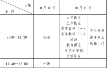 (二)专科起点升本科考试时间表