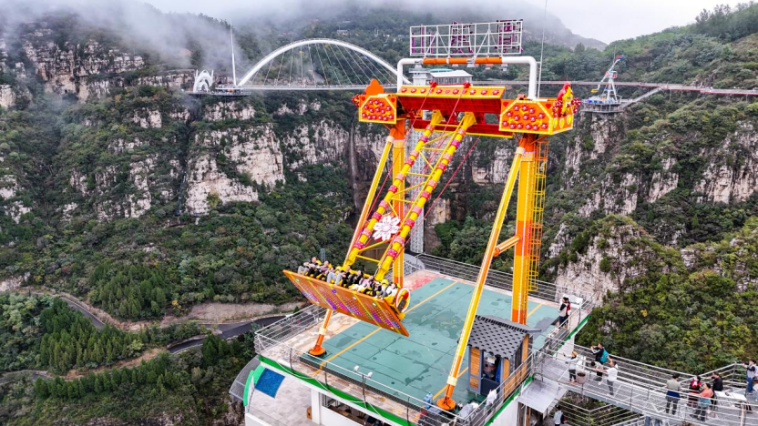 前者将参与者推向悬崖之外的高空,在巨大的摆荡弧线中,让人体验失重般的刺激,同时将脚下如火如荼的红叶山谷尽收眼底,惊心动魄与极致美景在此刻达成奇妙的统一;后者则以其傲人的海拔高度,提供了俯瞰群山的无遮挡视野,在高速旋转与起落间,将秋日的壮阔山河转化为一场动态的、沉浸式的视觉盛宴。