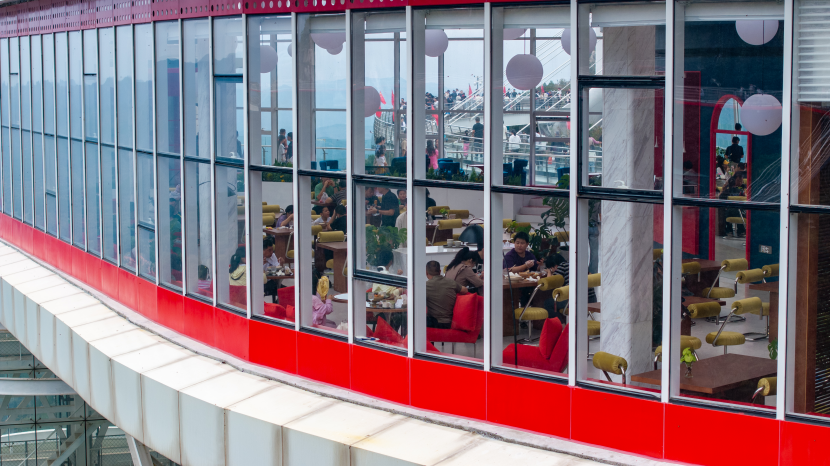 与之呼应的是「雾·云麓Cloud ridge」咖啡厅,这处坐落于崖畔的休憩之所,重新定义了“旅途小憩”的内涵。手握一杯精心调制的热饮,倚靠于巨大观景窗旁,看云海在山谷间流淌,看红叶在光影下变幻,时光在此刻变得缓慢而珍贵。这里将简单的咖啡消费,升华为一种备受追捧的“云端生活方式”,为游客提供了除了行进与刺激之外的静享时光,有效延长了停留时间,创造了高附加值的消费场景。