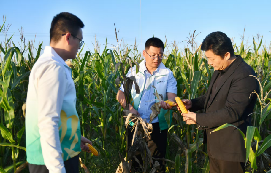 中国人寿财险山东省德州市中心支公司理赔服务人员连同乡镇领导现场了解玉米生长状况。