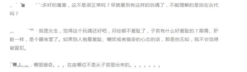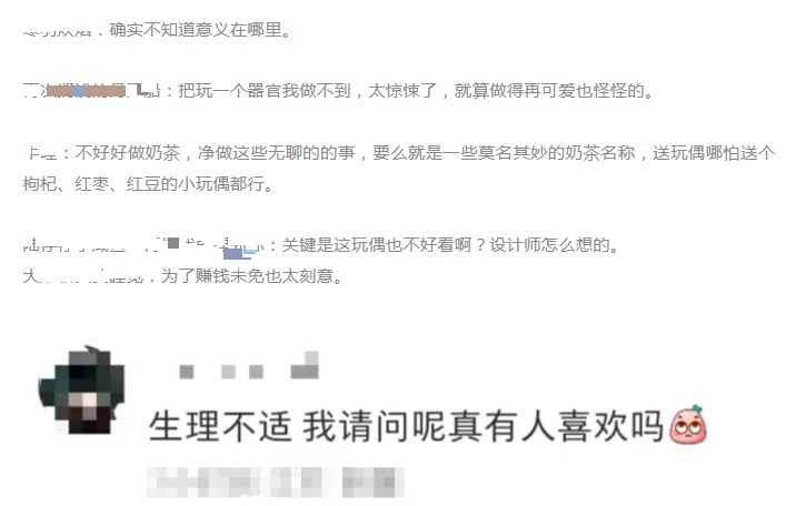 该子宫造型玩偶在社交平台上引发争议,有网友认为,这种类似人体器官的玩偶放在饮品店售卖,给人感觉不适,“不知道意义在哪里”,还有人认为是过于“猎奇”。