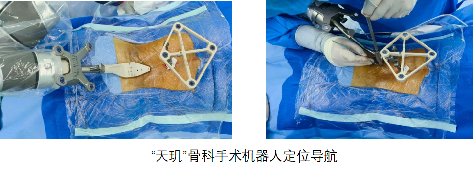 手术团队采用“天玑”骨科手术机器人定位导航下腰椎经皮椎弓根螺钉内固定术+病椎骨水泥强化术+椎间孔镜下椎板切除椎管减压术,恢复腰椎稳定性,解除神经压迫,为后续抗肿瘤治疗打下基础。经过3小时精细配合,手术取得圆满成功。