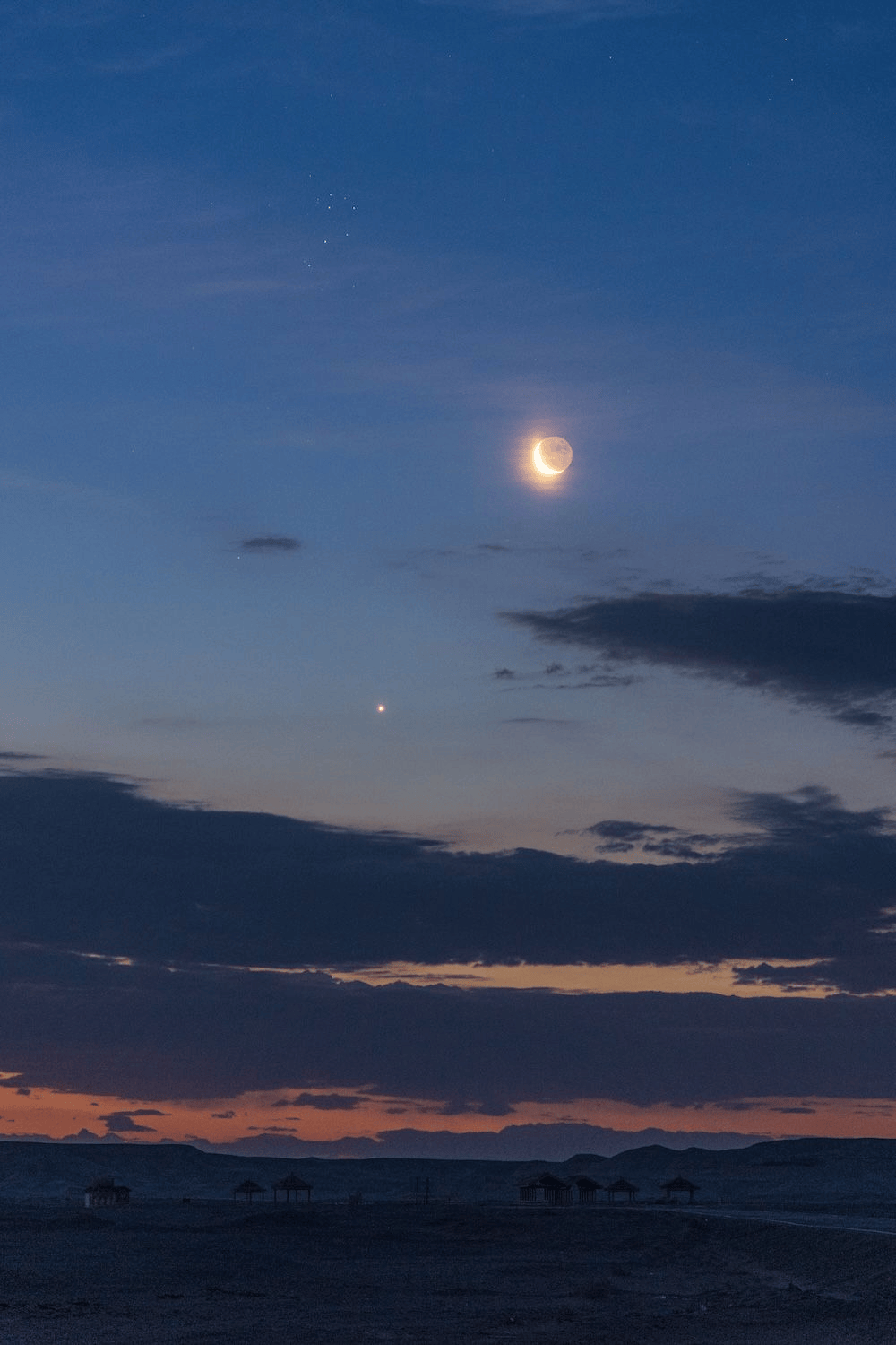 2022年6月26日,在新疆哈密大海道拍摄的启明星伴月。(戴建峰 摄)