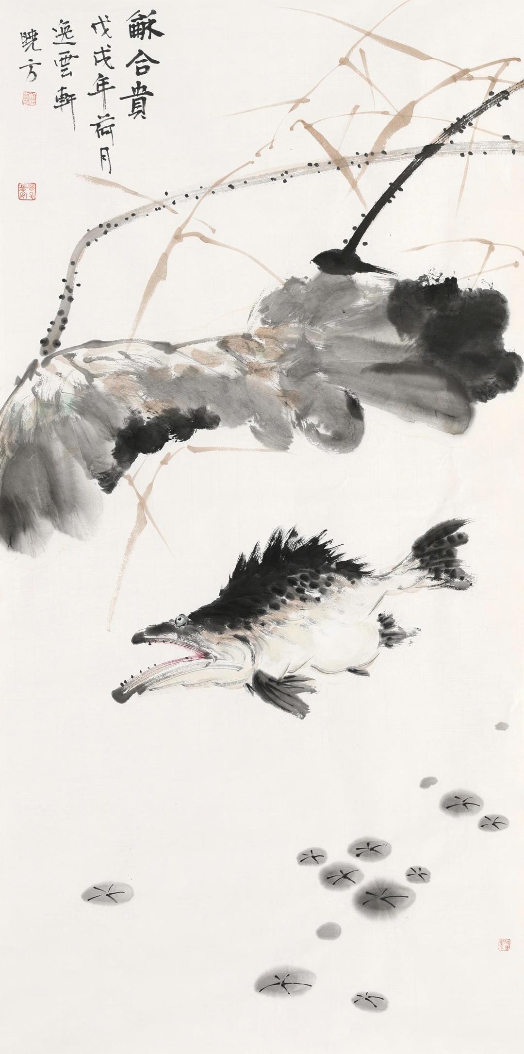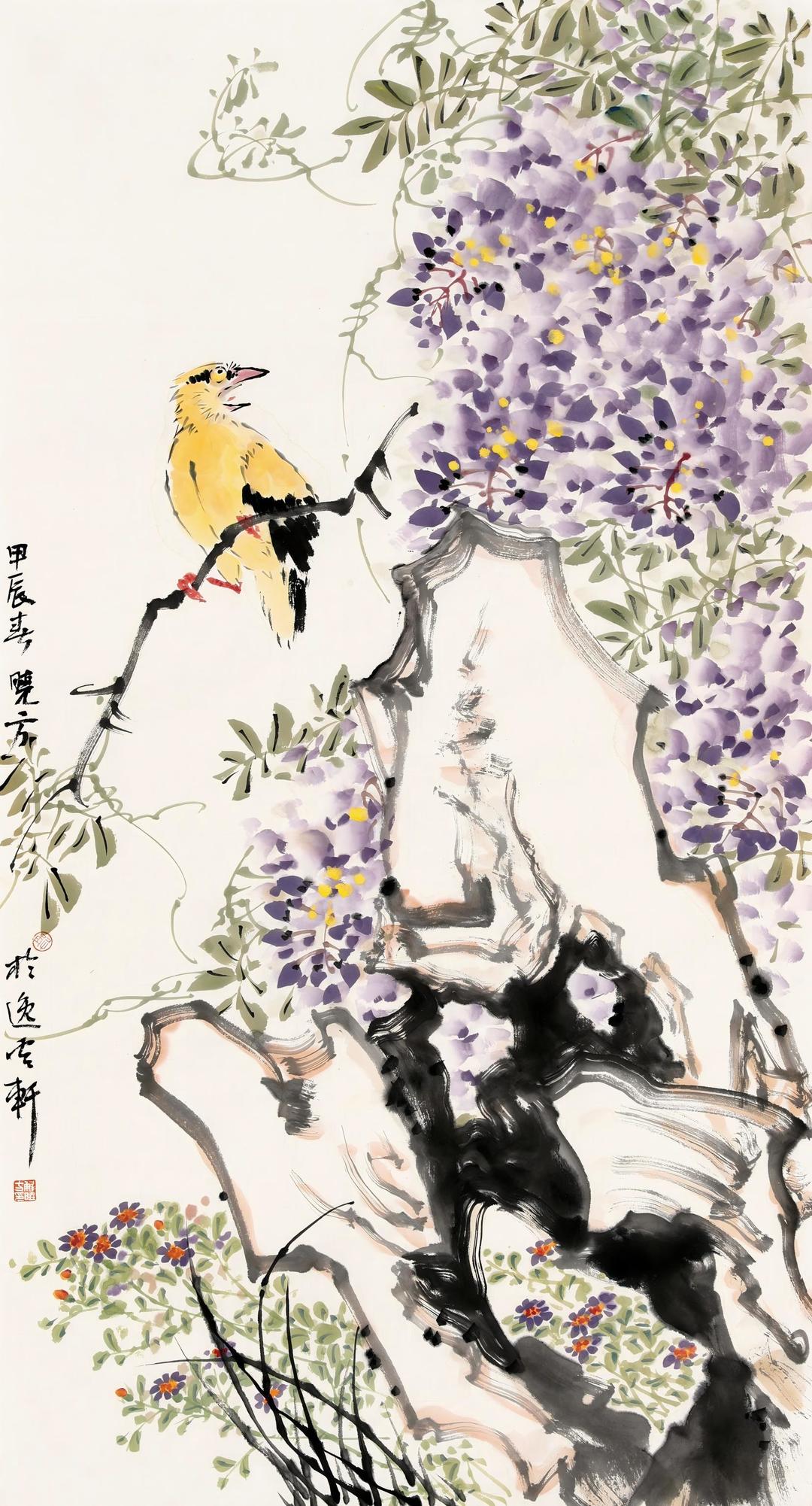 解晓方先生三十多年情钟小写意花鸟画,尤善画紫藤、荷花、竹子。他的画笔墨灵动,以情传神,融情感于笔端,无论一草一木、一枝一花,还是一鸟一鱼,无一不是画家真实感情的流露,赋予画面勃勃的生命力。另外值得一提的是,他的人物画,包括罗汉、仕女、达摩等题材的创作也形成了画家自己独有的风格。在这些大量的人物画里,可以看到顾恺之、吴道子的影子,还可以看到西方油画光影色彩技法对其作品的较大影响。传统与外域文化的影响,加上画家独特的理解,技法上独特的处理,使得作品更具个性,给人一种陌生化的视觉享受。其作品,无论在花鸟画还是人物画上,最大特征就是谢赫所说的六法第一之“气韵生动”。他的花鸟和人物,在宣纸上是活的,“在创作上,我始终要求自己:不求像,唯求活。”解画把能让“清雅飘逸”的画面上洋溢着鲜活的生命力作为最高追求。谢赫云:“ 虽画有六法,罕能尽该。而自古及今,各善一节。”因此说,解先生的画品能达到如此境界不简单。