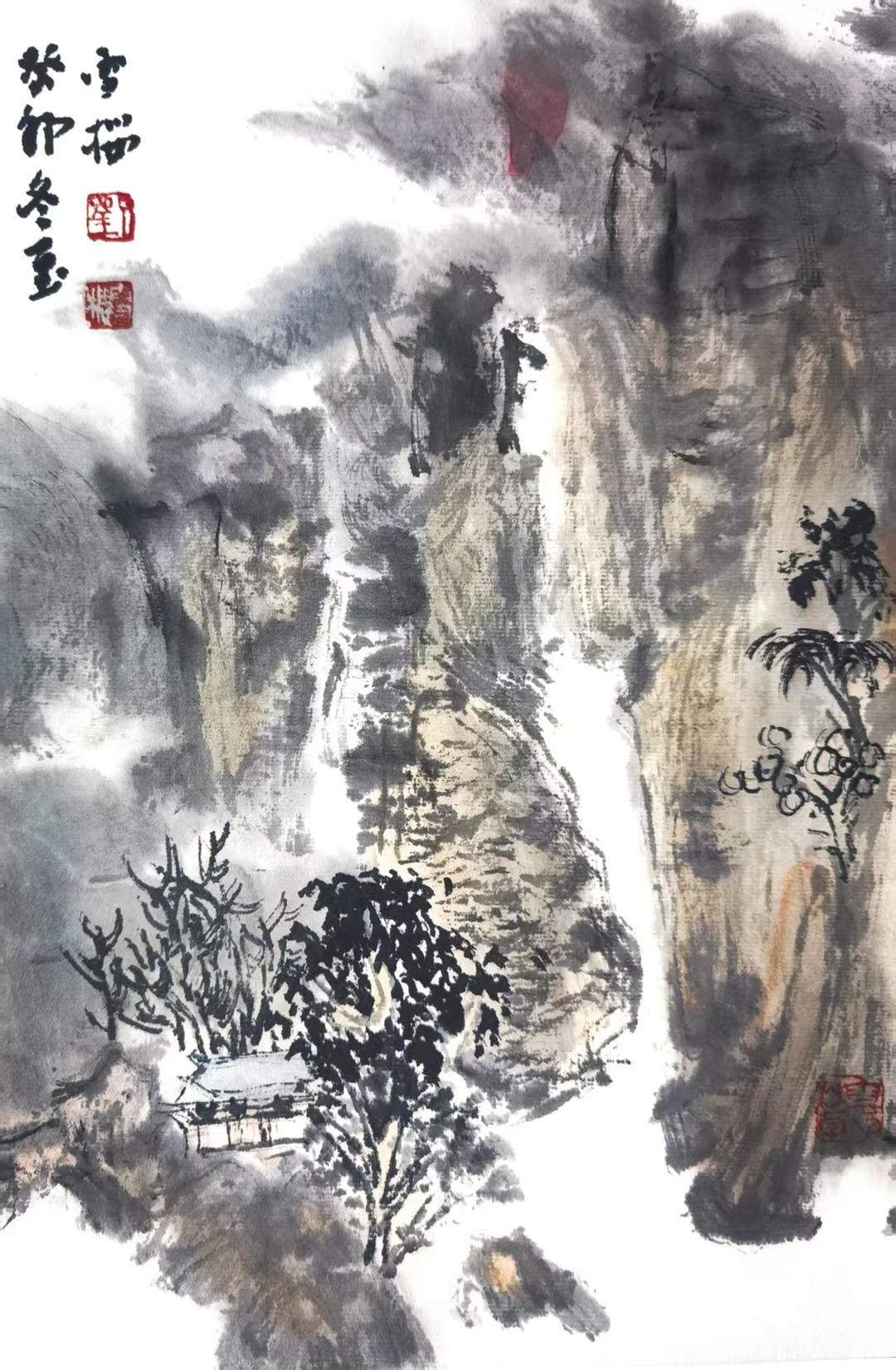 刘雪樱的山水画有一种雄奇的气象,峻拔秀丽。没有女性画家那种纤细娇柔的特色,她笔下的山水都显得生气贯注,崇山峻岭间的雪白得那样的耀眼眩目。她画的花鸟像水洗过的一样的新妍生动,像刚从园子里摘下来的一样新鲜。她的这种绘画给人一种童心漾漾阳光朗润的感觉,这应该是她内心的写照。她是一个非常爱好学习的人,像海绵一样吸收各种各样的新知,因为她要教学生要有理论,她又要经常带着学生到外地去写生采风,所以她又要具有历史地理乡土人情等各方面的知识,这种教学相长学以致用,导致她既是一个画家,又是一个美术理论家,一个像蜜蜂一样忙忙碌碌的带一点诗人气质的教师。她非常热爱教师工作,习惯于紧张而丰富夜以继日的操劳。她有一个笔名叫“澍生”,澍者,时雨也。她感恩时代也愿回报生活。她兼收并蓄转益多师潜心地向老画家和各种画派学习,但是又不固守盲从。她对非艺术的炒作十分反感。对我说过艺术不能有功利,但凡加入了功利就不是艺术。为此我写过一首打油诗送她: