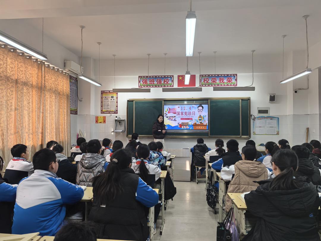 12月3日,各班级召开“宪法在我心中”主题班会。班主任通过趣味动画、案例讲解、知识问答等形式,向同学们普及宪法基本知识,解读宪法与日常生活的密切联系,让抽象的法律条文变得通俗易懂。班会尾声,全体学生高举右拳,庄严宣誓:“我立志成为有理想、有道德、有文化、有纪律的社会主义公民,忠于中华人民共和国宪法和法律……”铿锵有力的誓言回荡在教室,更深深烙印在每一位同学心中。