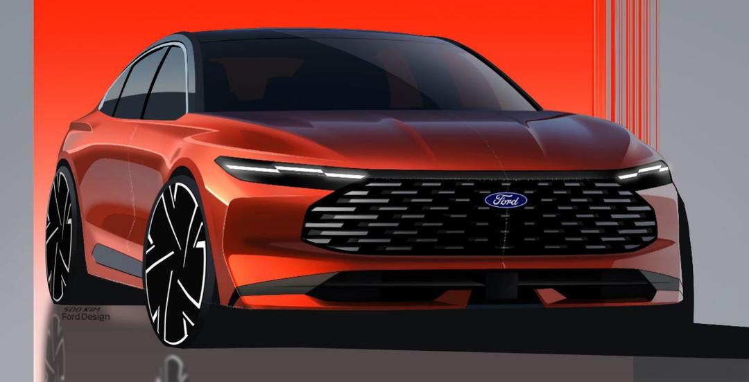 福特新蒙迪欧融合美式运动基因与大气设计语言,呈现出兼具优雅与力量感的外观造型。新车前脸采用“低趴宽体”设计,压低车头、拉伸视觉宽度,配合俯冲式下沉线条与修长大灯,强化动感姿态。