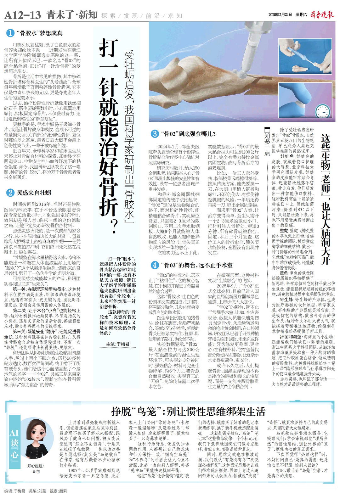 他们给这个心血结晶起了个接地气的名字——“骨02”,灵感正是来自家喻户晓的“502胶水”,盼着它能在骨科领域,续写“强力黏合”的传奇。