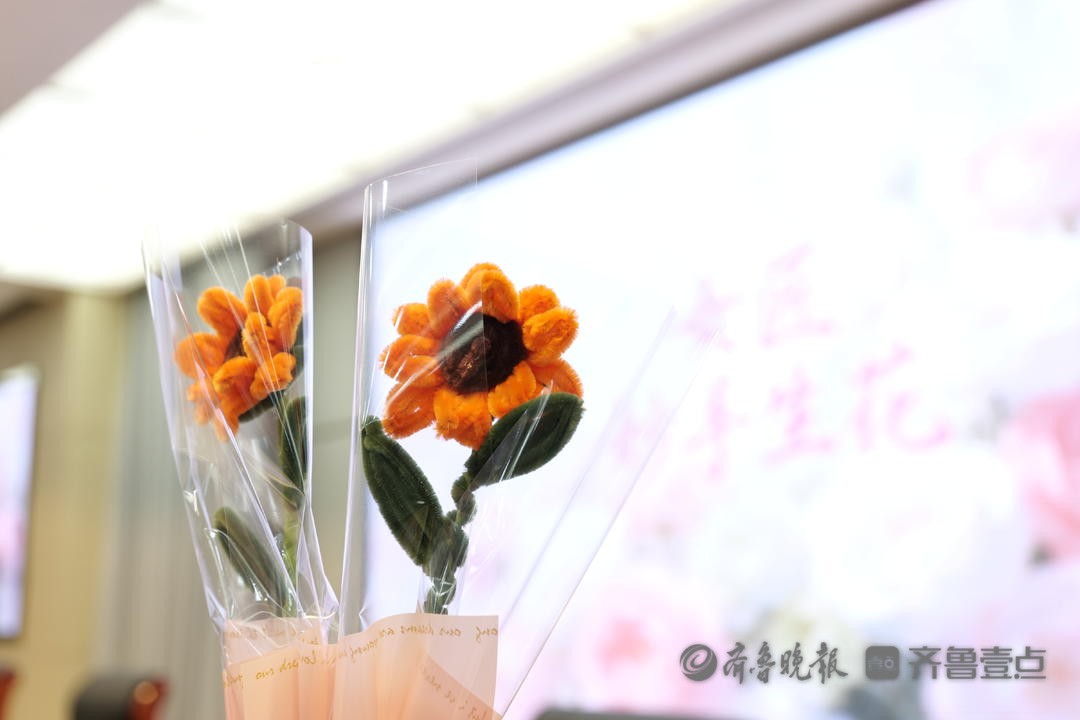 “女匠,妙手生花”手工制作体验在学术报告厅进行。教职工体验了向日葵手工花艺制作,从花瓣塑形到花盘组装,每一步都体现了满满的匠心与创意。