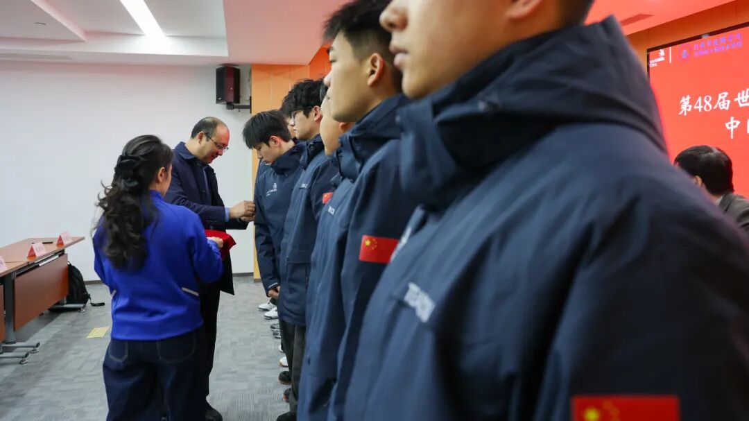仪式上,日照市人力资源和社会保障局党组成员、副局长杨洪玉为十名集训选手逐一佩戴日照站集训臂章。这枚小小的臂章,既是荣誉的象征,也承载着在集训新阶段再接再厉、勇攀高峰的使命。