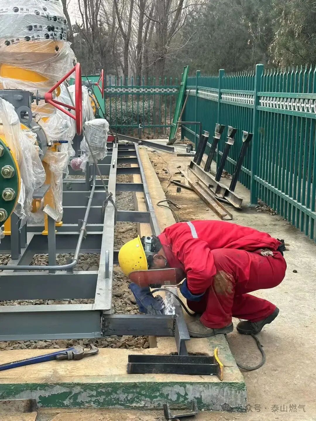 项目推进过程中,泰山港华燃气联合各协作单位累计召开10余次专项工作会议,成功解决设备参数适配、改造工艺优化、施工安全保障等8项技术性难题,为改造工作扫清障碍。2025年10月,道朗门站高高压撬设备正式启动返厂改造,2026年1月改造工作圆满完成。彼时正值冬季燃气保供关键期,为最大限度降低施工对正常供气的影响,公司积极筹划,制定施工方案与应急保障预案,优化施工流程,将原定4天的施工周期压缩至2天;同时与绿能公司紧密协同,实现设备运抵、人员进场、施工启动的无缝衔接。1月26日9时至27日12时,项目团队连续奋战16小时,高效完成设备安装;随后,系统调试、压力测试、带载运行——各个环节环环相扣、压茬推进,当日15时,设备各项指标均达运行标准,正式进入测试运行阶段。